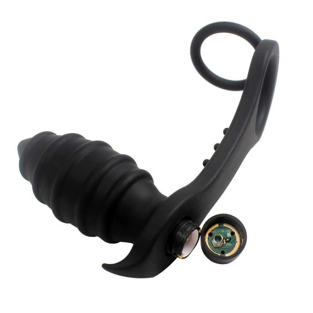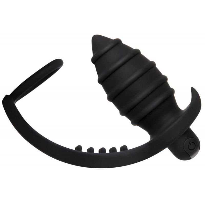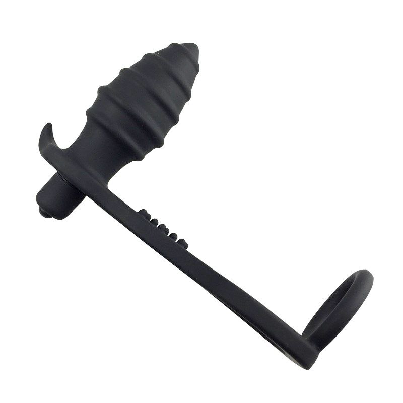 Анальная пробка из силикона с вибрацией. Два кольца - для мошонки и члена.