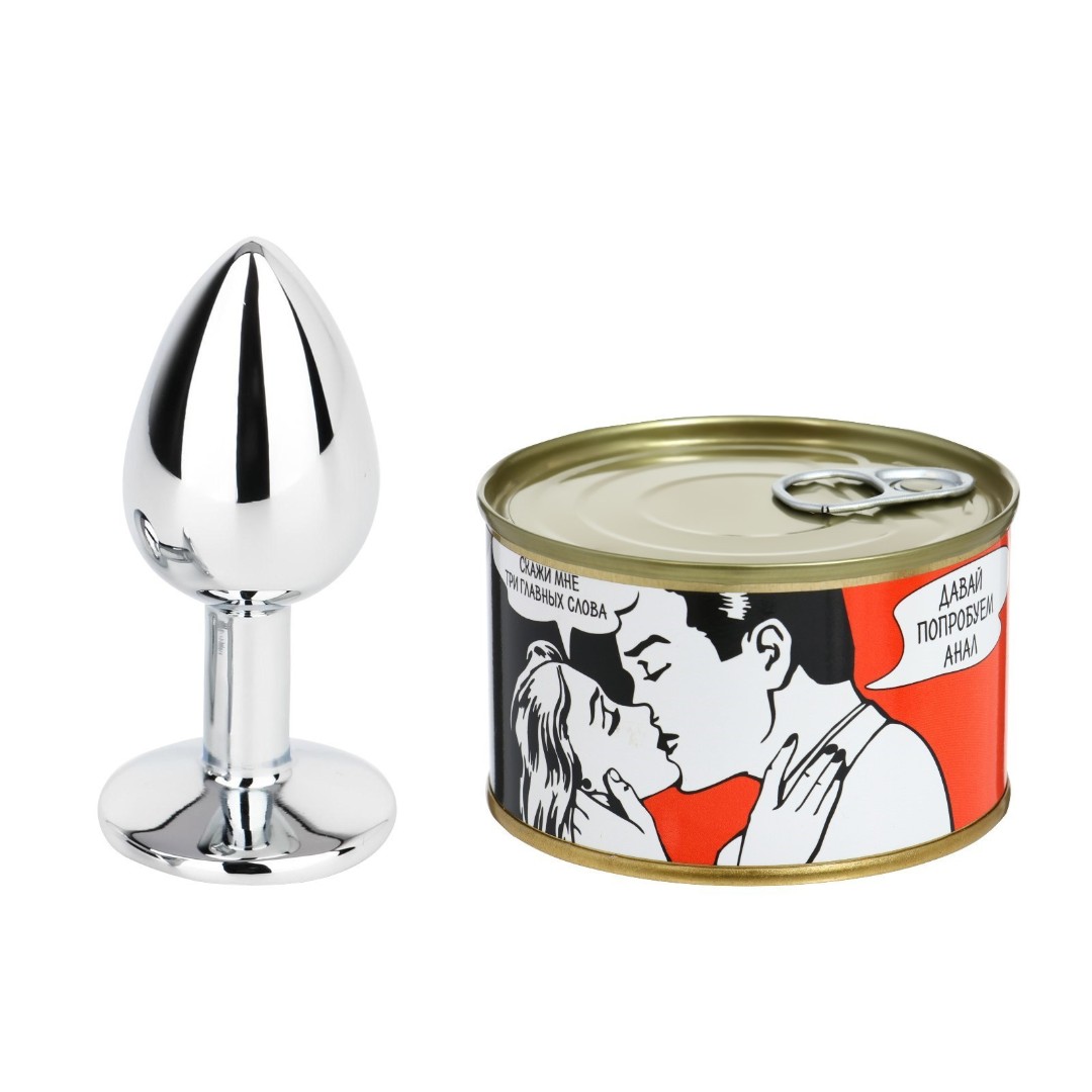 Анальная пробка "Скажи мне три главных слова", консервированная, алюминий, d=2,7 см, 9242159, 9242159