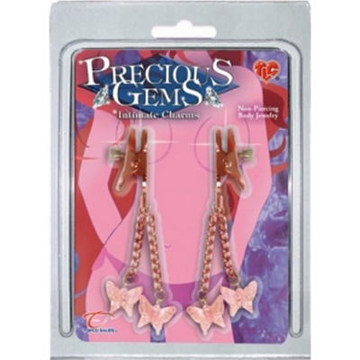 Грудь это одна из главных эрогенных зон женщин. Восточные поэты сравнивали соски женщины с рубинами, с сочными зернами граната. Украстье свою грудь для Него! Зажимы на соски в виде гламурных прищепок с регулятором давления сжатия. Внутренняя поверхность имеет мягкие подушечки уплотнители. Теперь вам не нужно прокалывать соски, можете одевать это украшение для эротических игр. Маленькие перламутровые бабочки на цепочках, двигаясь в такт вашим движениям, будут возбуждать вас все больше и больше. Подари себе новые ощущения!