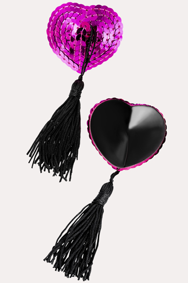 Пэстисы от Erolanta - сексуальное дополнение к вашему образу. Пэстисы выполнены в форме сердец расшитых розовыми пайетками и украшенных кисточками черного цвета. Благодаря вогнутой форме пэстисы всей поверхностью прилегают к груди, а специальное покрытие с внутренней стороны будет держать их на месте даже во время активных движений.