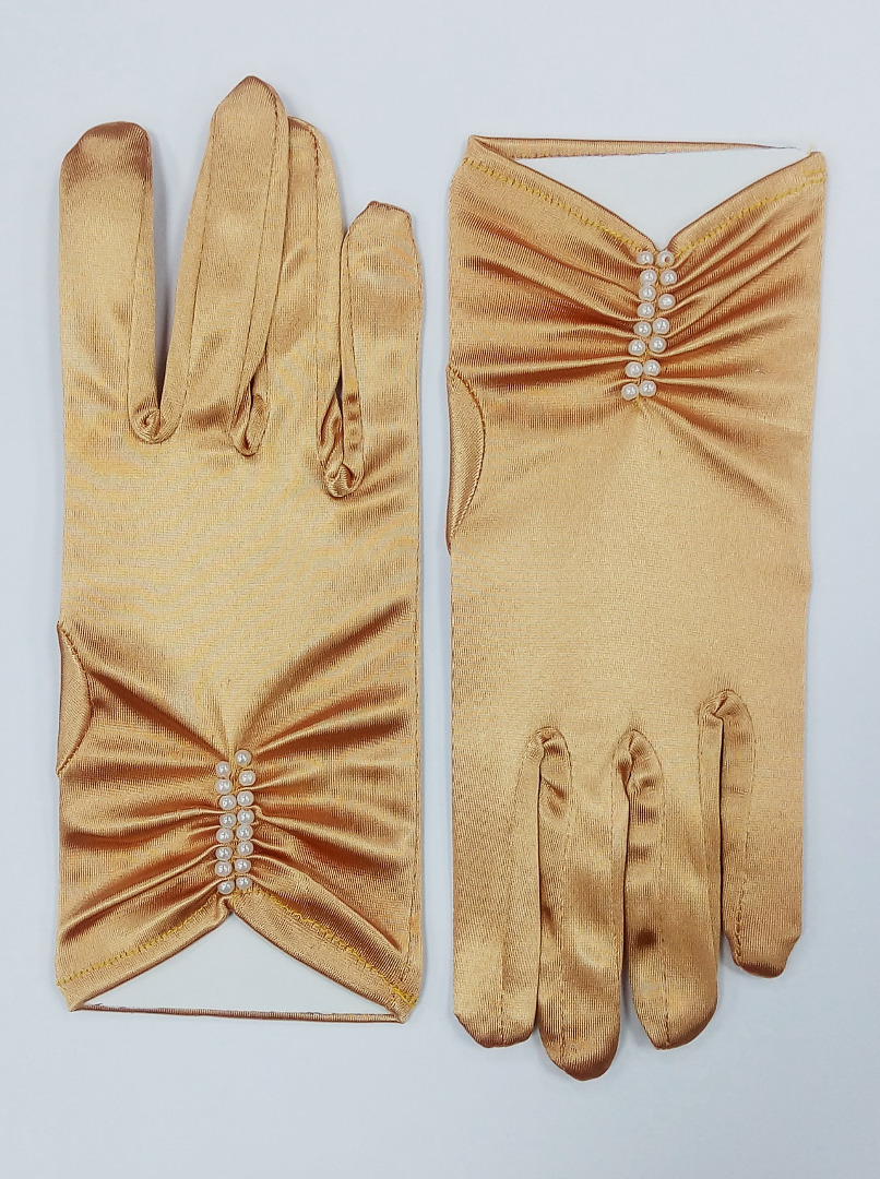 Мини перчатки со сборкой и украшением из бусин. Длина 22 см.
