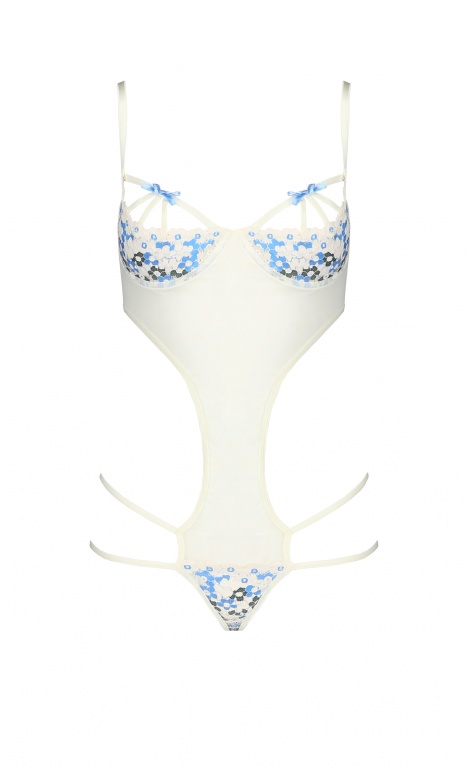 Соблазнительное боди Emma с полуоткрытыми чашками на косточках. Бретели регулируются по длине, на спинке застежка на крючки-петли. Боди декорировано цветочным узором и атласными бантиками, упаковано в красивую плотную коробку. Размер S/M