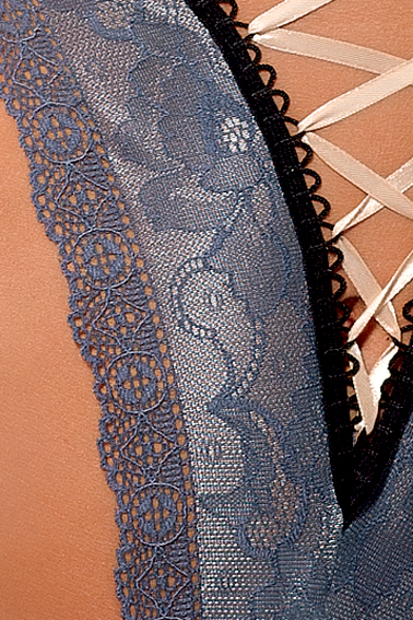 Кричащее и дразнящее боди выполнено из шикарного цельного кружева благородного серого цвета. Покрой боди изумительно подчеркивает черная окантовка и корсетная шнуровка, нежного молочного цвета. Боди на тонких регулируемых бретелях, что позволяет Вам улучшить его посадку по Вашей фигуре. V-образный низ боди визуально вытягивает силуэт и стройнит Вас. Итальянское кружево. Размер XXL/XXXL
