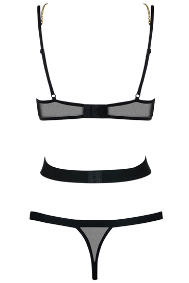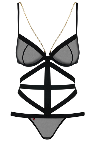 Откровенное, полупрозрачное боди Bondy на тонких бретелях, от известного польского бренда Obsessive. Ленты соединяют верх и низ изделия, эффектно подчеркивая соблазнительные изгибы. Зона декольте украшена цепочками, что визуально увеличивает грудь. Мягкая чашка лифа на косточке. Разбудите страсть в своем мужчине