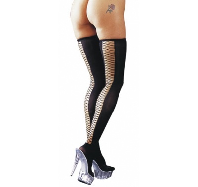 Cottelli Collection представляет чёрные непрозрачные чулки, украшенные широкой полоской полупрозрачной сетки.