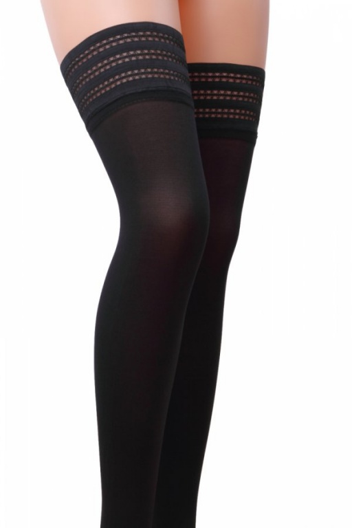 Чулки черные на резинке прекрасно сочетается с эротическими корсетами и комплектами эротического белья. Самоподдерживающаяся резинка усилена силиконовой лентой, которая надежно фиксирует чулки на бедрах. Размер S-М.