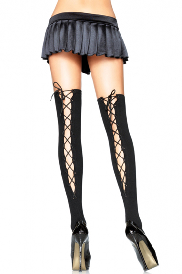 Красивые чулки Le Frivole выполнены из плотного материала сплошной фактуры и декорированы пикантной шнуровкой сзади.