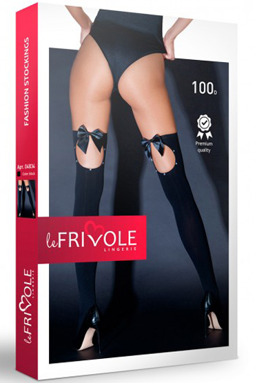 Красивые чулки Le Frivole выполнены из плотного материала сплошной фактуры и декорированы большими атласными бантами.