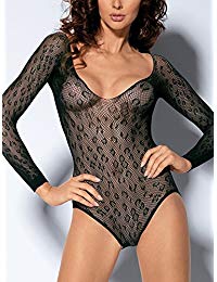 Эпатажный комбинезон-сетка (боди) c цветочным узором и полуоткрытой спинкой с длинным рукавом