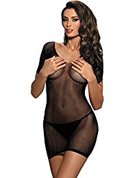 Платье-сетка с мелкой сеткой, с коротким рукавом, без рисунка.