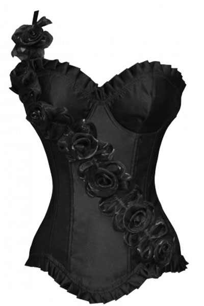 Неформальный наряд, чёрный корсет украшенный розами, отдалённо напоминает Готическую субкультуру.