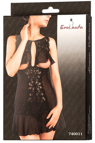 Комбинация Erolanta сделана из мягчайшей полупрозрачной ткани со вставками кружева, вырезами для груди и игривыми воланами. Регулируемые бретели прекрасно подгоняются под нужный размер.