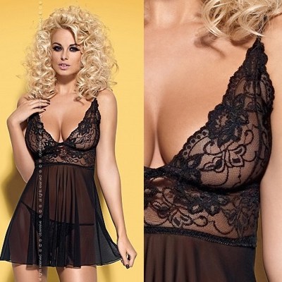 Порадует наличие игривых кружев и мягких регулируемых бретелей, свободно падающих на груди, покрывающих часть спины и живота. Они только ещё более разжигают чувства партнеров. Расширяющаяся, прозрачная нижняя часть пеньюара с деликатно й отделкой открывает женские формы, побуждая к шалостям.