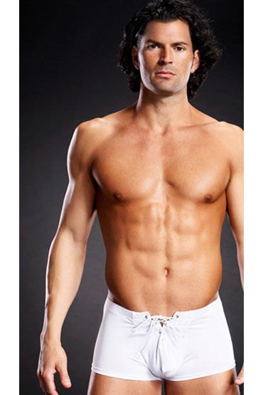 Модные мужские трусы-боксеры белого цвета со шнуровкой спереди. Это стильная облегающая модель из приятной мягкой ткани. Они будут эффектно смотреться и подчеркнут вашу фигуру. Кроме безупречного внешнего вида они отличаются высокой комфортностью.