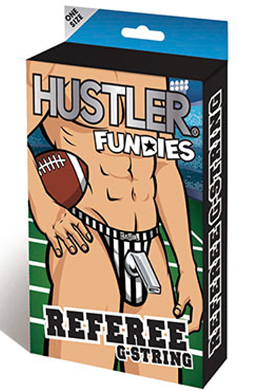 Всегда мечтал быть тренером с большим настоящим свистком? HUSTLER дает такую возможность! Классические стринги черного цвета в тонкую полоску. Свисток закреплен на металлическом колечке.