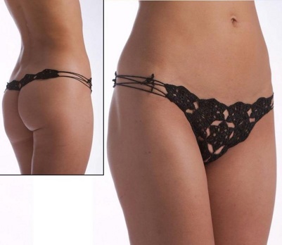 Черные женские трусики из шелка, украшенные ажуром.Роспись очень завораживающая, через её проблески видны нежнейшие места женского тела