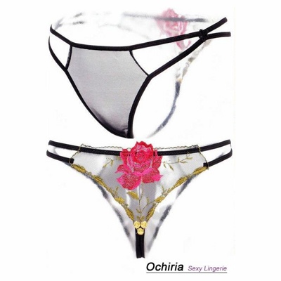 Изящная форма, прозрачный материал и эффектный декор. Это по-настоящему золотые трусики, а роза на них – самая что ни на есть живая.