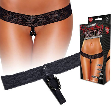 Кружевные трусики с вырезом в паху, который украшает жемчужная нить