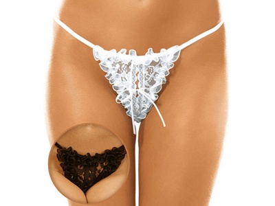 Кокетливые трусики стринги на тонких эластичных перемычках привлекают умилительным декором треугольной детали по переду. Роскошная вставка из черного кружева с проявляющимся узором игриво обрамлена по краям витиеватыми завитками миниатюрных оборочек, сохраняющих устойчивую пышную форму. Посредине – аккуратный разрез с волнистыми краями, заманчиво фиксируется на милый невесомый бантик. Обаятельная загадка соблазнительного наряда хранит в себе обольстительные и дерзкие замыслы непосредственной искусительницы, ее страстные фантазии и дерзкие порывы. Эротичный аксессуар не только создает горячую атмосферу, но и демонстрирует смелую уверенность чувственной натуры, способной вдохновлять на неимоверные любовные игры и эксперименты.