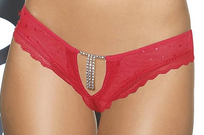 Красные стринги, с пикантнои вырезом в шаге. Спереди декоративный элемент выполненный из блестящих камешков. Красный цвет и прозрачный материал придают изысканный вид!