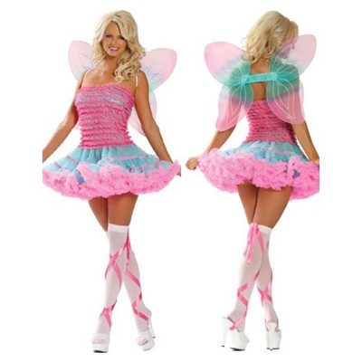 Очень пышное маскарадное (ролевое) платье с рюшами и валанчиками, стринги и крылья идут в подарок.