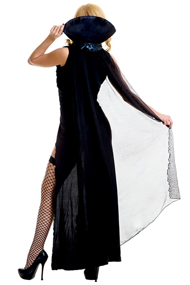 Обворожительный костюм произведет фурор на вечеринке в честь Хэллоуина. Сладострастная и сексуальная кровопийца не оставит равнодушным никого.Шикарное черное эластичное платье с глубоким декольте завораживает.
