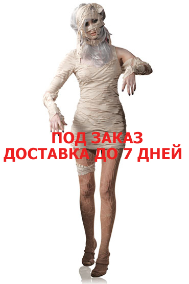 Для тех, кто хочет быть оригинальным и любит выделяться из толпы. Необычный костюм Мумии сделает Вас звездой любого праздника. Включает в себя: платье с рукавами, ткань для обертывания ноги и головы.