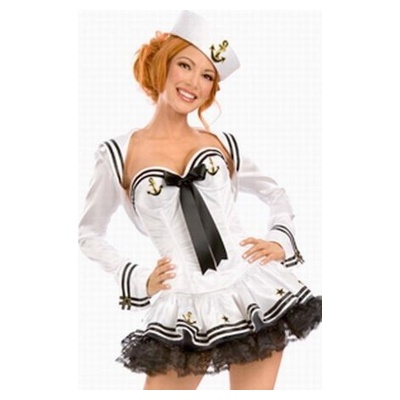 Игривая и элегантная вариация на тему «девушка и море». Удлинённый корсет с декольте в форме сердца соединяется с пышной юбчонкой-клёш. Объём юбке придаёт пришитый ажурный подъюбник.