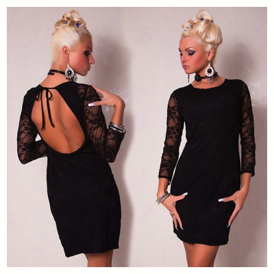 Классика побеждает всегда. Перед нами изумительная модель классического кроя с открытой спиной. Единственная вольность дизайнера – это игривые ажурные рукава и шнурок, на котором, собственно, и держится вещица.