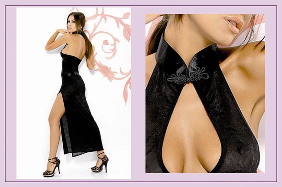 Навеянное культурой Востока длинная ночная рубашка Aya изготовлена из эластичной элегантной ткани с блестящими розами с восточной ноткой. Высокий соблазнительный разрез красиво подчёркивает и оптически удлиняет ногу. По бедрам рубашка завязывается сатиновой ленточкой. Придающая изысканность сатиновая стойка с характерной застёжкой в восточном стиле, которая контрастирует с соблазнительным глубоким декольте.