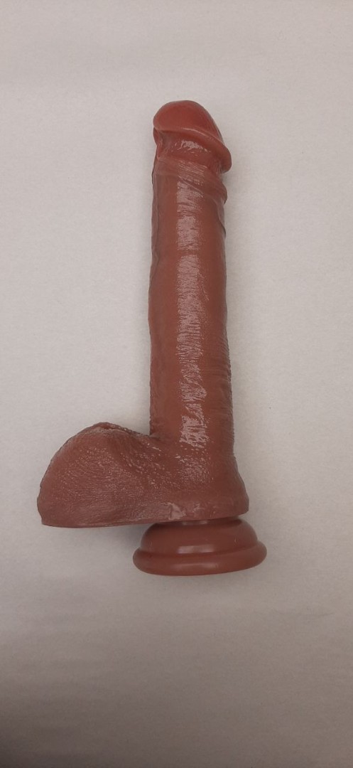 Реалистичный по форме, крепкий и упругий, с нежным рельефом, с мошонкой и раскрытой головкой...