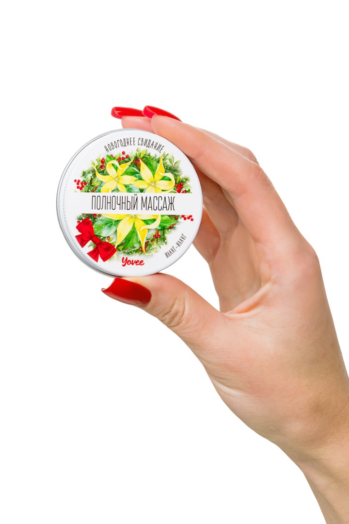 ЗакрытьМассажная свеча Yovee «Полночный массаж» с афродизиаком «Иланг-иланг» - изысканный аксессуар для новогоднего свидания. Изготовлена из 100% натуральных масел, которые питают, увлажняют, смягчают кожу и делают её шелковистой. Ненавязчивый пряный аромат остается легким шлейфом, напоминая о проведенных минутах блаженства.