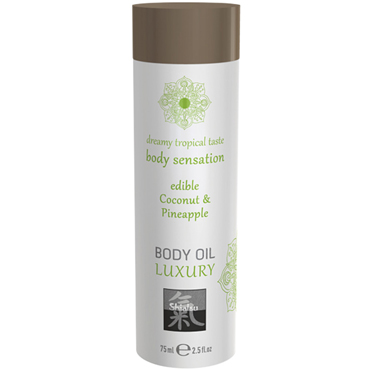 Со съедобным маслом для тела Shiatsu Body Oil вы сможете сделать массаж не только приятным но и вкусным. Масло можно слизывать, покусывая и целуя тело своего партнера, что весьма быстро его заведет. Невероятный аромат расслабит, а масла в составе напитают кожу, сделав ее нежной и шелковистой на ощупь. Нежная обволакивающая текстура подарит незабываемые ощущения. Подходит для эротического массажа.