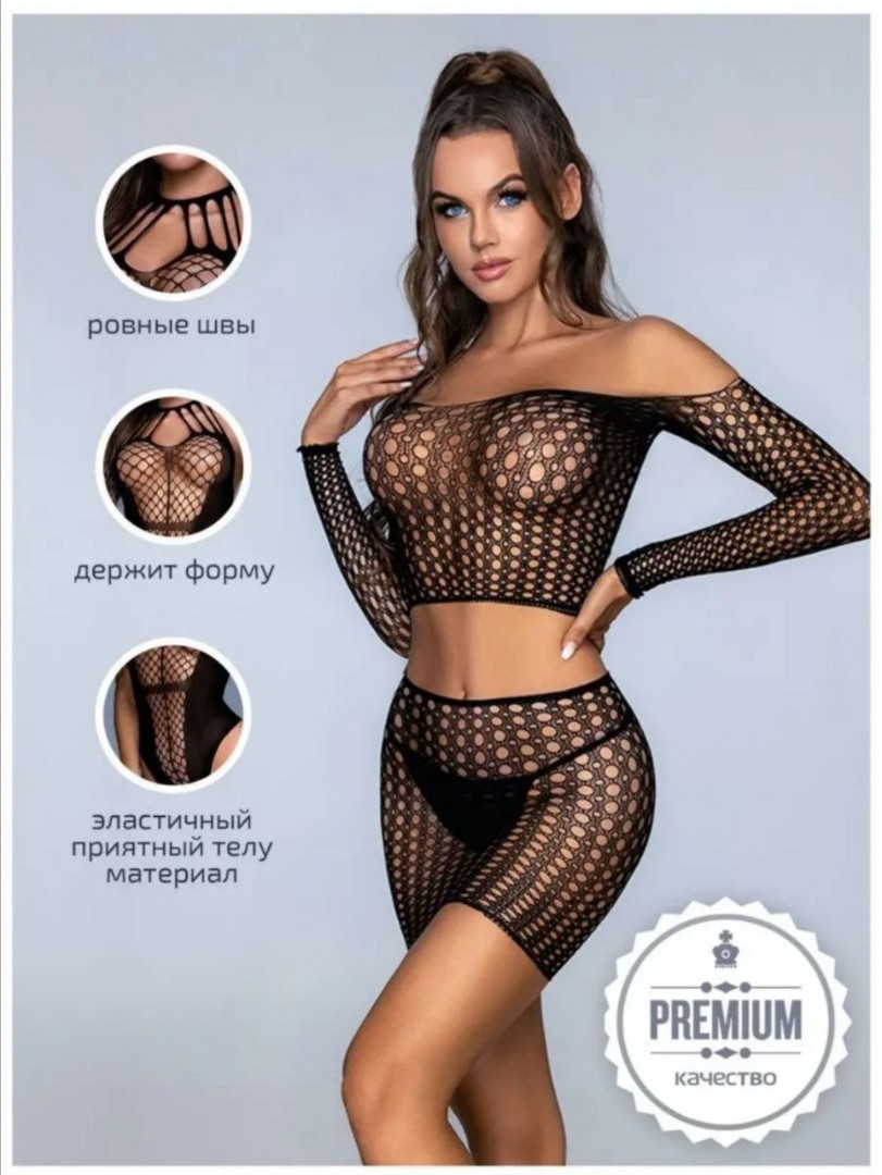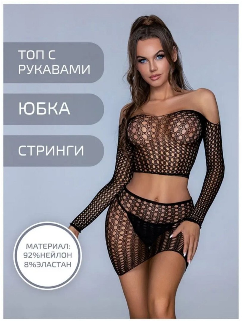 Костюм-сетка (топ, юбка, стринги), 7959, 7959