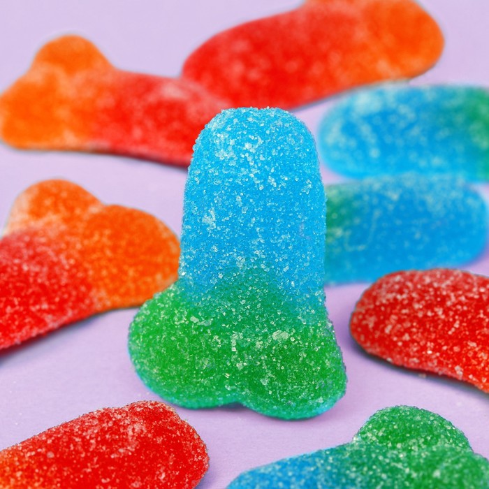 Состав: кукурузный сироп, сахар, сорбитол, пектин, вода, желатин, лимонная кислота, яблочная кислота, искусственные ароматизаторы, цитрат натрия, карнаубский воск, искусственные красители (Е102, E110, E129, E133).