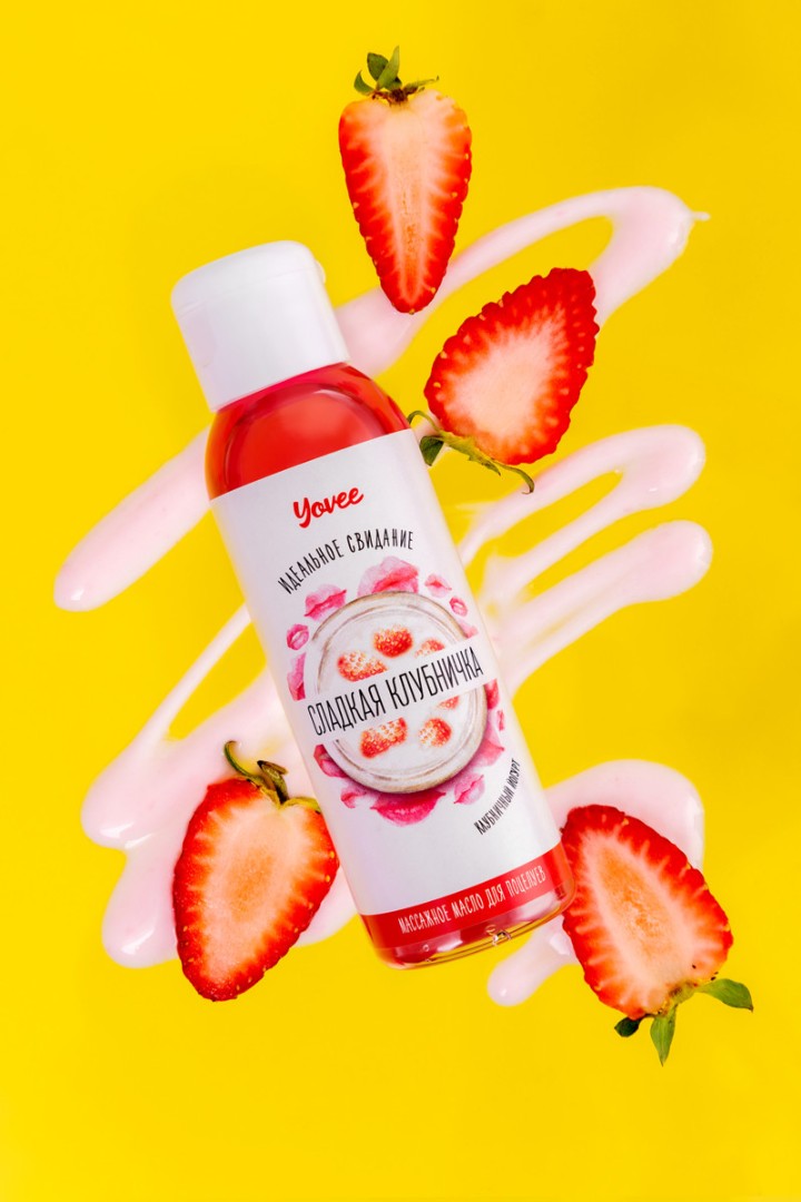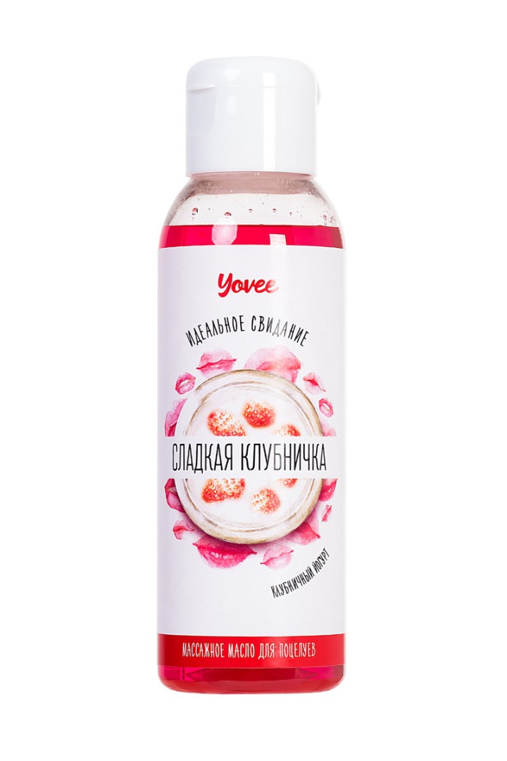 Массажное масло для поцелуев Yovee «Сладкая клубничка» со вкусом клубничного йогурта сделает свидание незабываемым. Ароматный сладкий массажный продукт дополнит парный романтический вечер или станет сочным уходовым средством для самостоятельного использования. Ощутите, как кожа наполнится влагой, станет мягкой и упругой. Яркий десертный аромат опьянит, раскрываясь на горячей коже роскошным шлейфом.