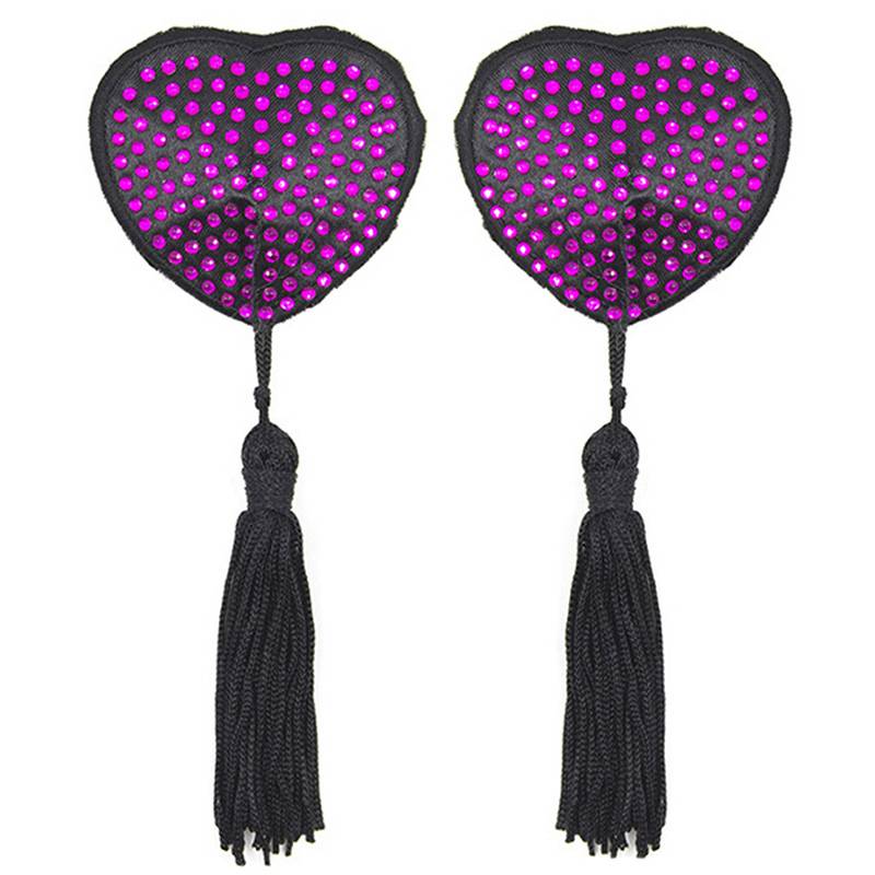 ЗакрытьЧерные пэстисы с ярко-розовыми стразами и кисточками