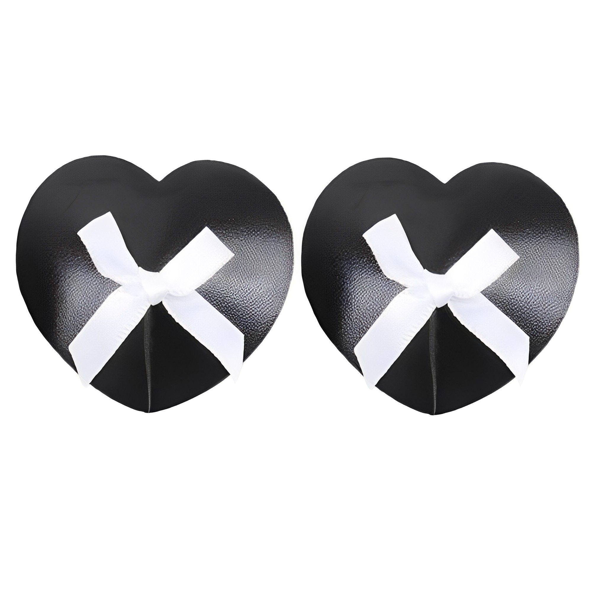 ЗакрытьЧерные пэстисы-сердечки с белыми бантиками