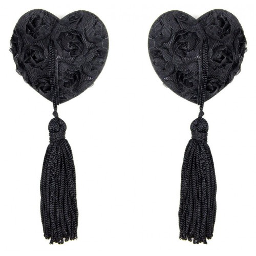 ЗакрытьЧерные пэстисы в форме сердец декорированные розочками