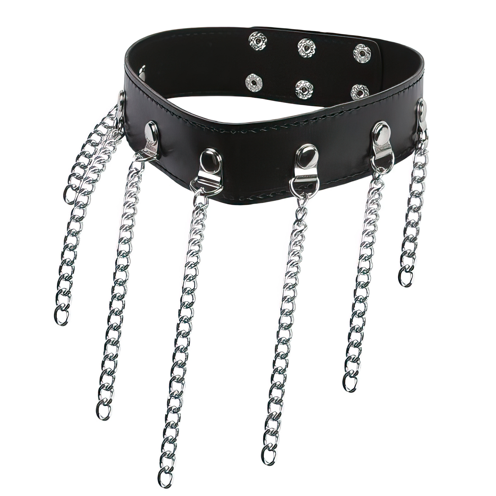 ЗакрытьЧерный БДСМ ошейник с длинными цепями