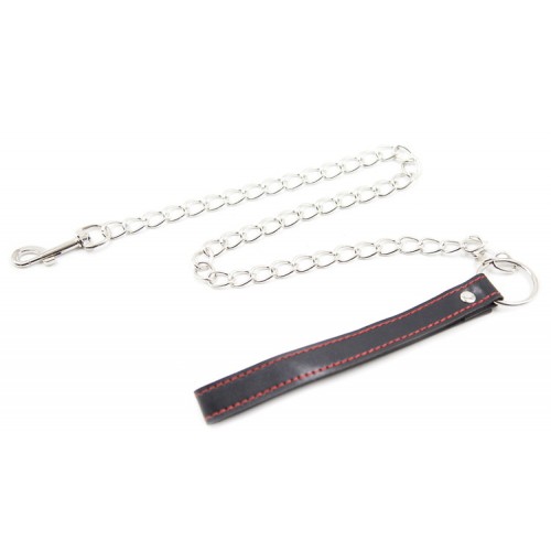 ЗакрытьЧерный поводок с красной строчкой на цепочке