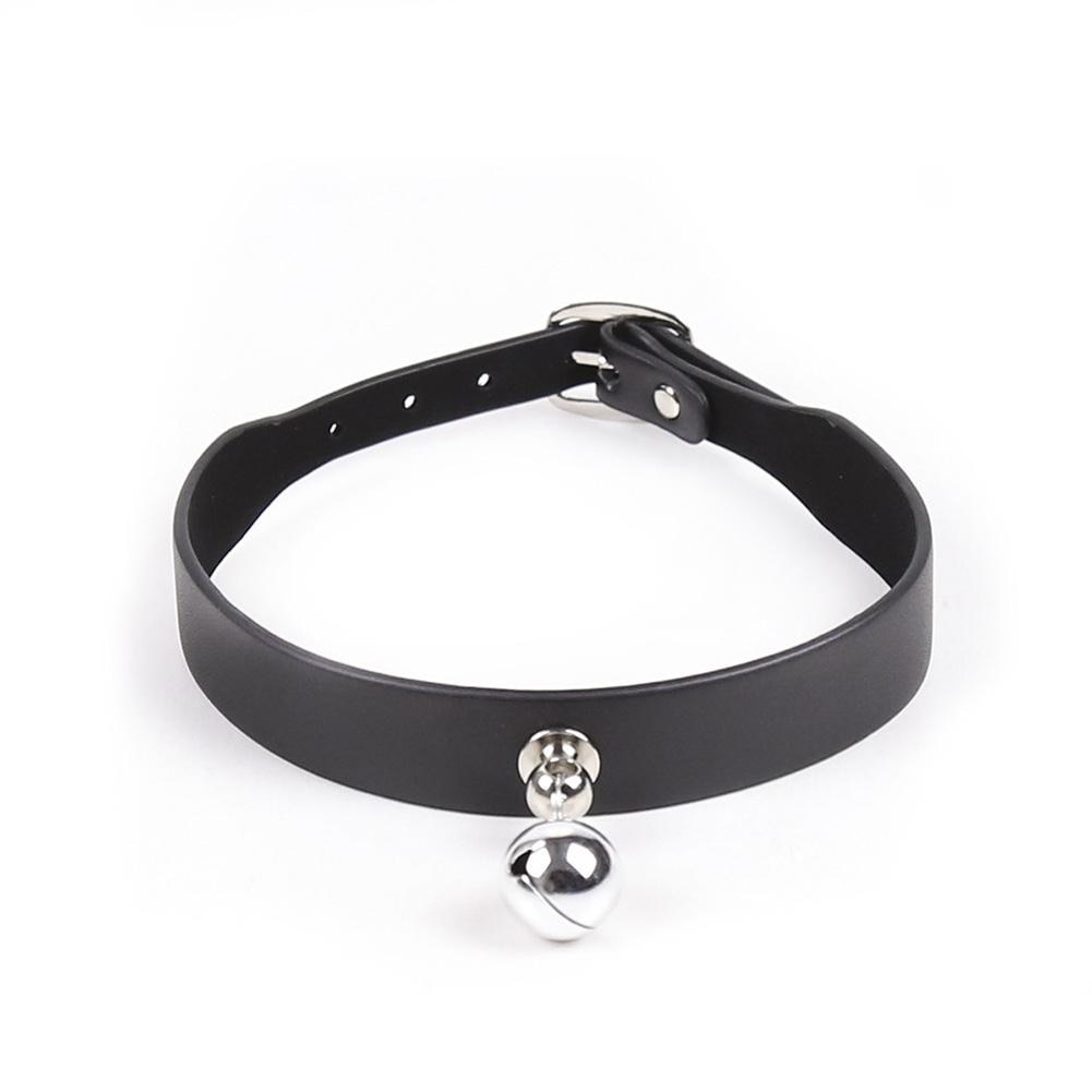 ЗакрытьЧёрный ошейник декорированный металлическим колокольчиком