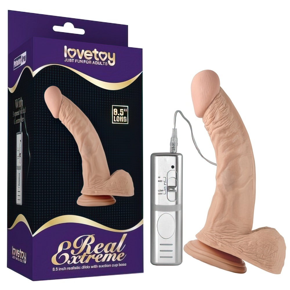ЗакрытьИзогнутый телесный вибратор на присоске Real Extreme 22 см