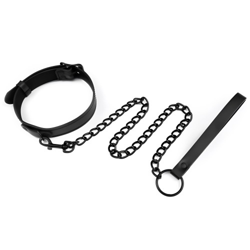 ЗакрытьКлассический ошейник из искусственной кожи с поводком