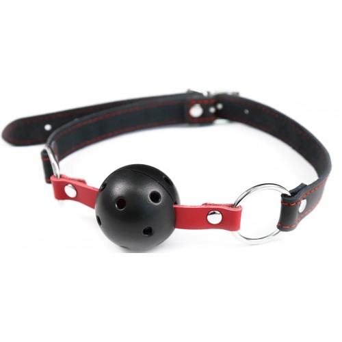 ЗакрытьКляп чёрный дышащий на ремешке с красной строчкой