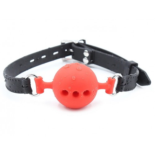 Кляп выполнен в виде силиконового шарика красного цвета с отверстиями.