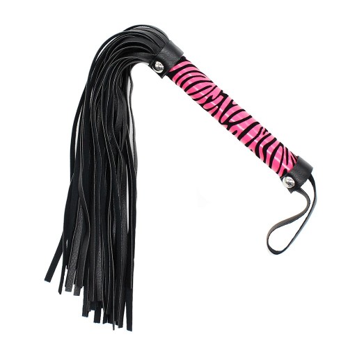 ЗакрытьКомпактная черно-розовая плеть с тигровым принтом на рукояти 40 см