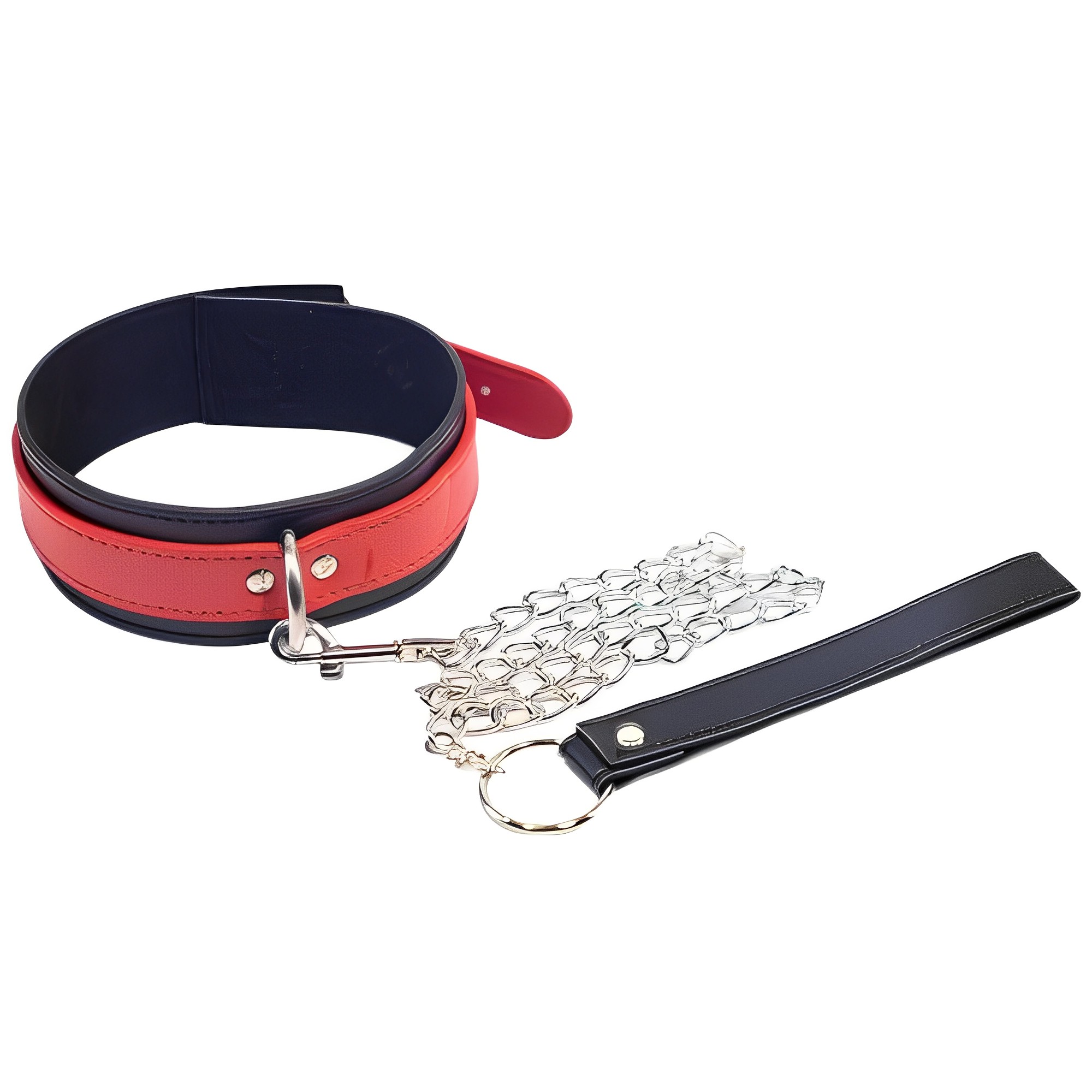 ЗакрытьКрасно-черный БДСМ ошейник с поводком