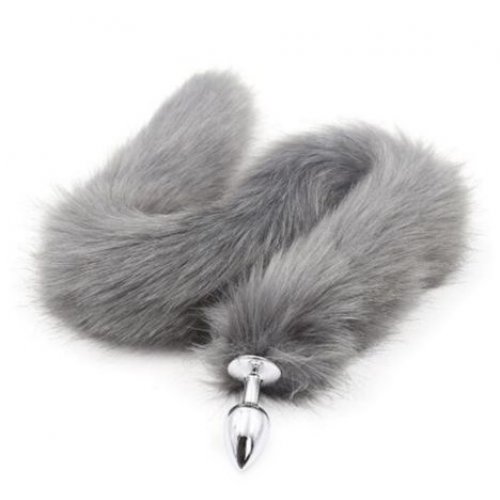 ЗакрытьМеталлическая анальная пробка L с длинным серым хвостиком 86 см