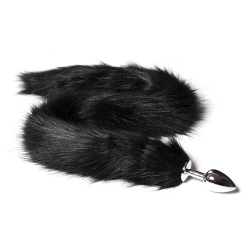 ЗакрытьМеталлическая анальная пробка M с длинным черным хвостиком 85 см